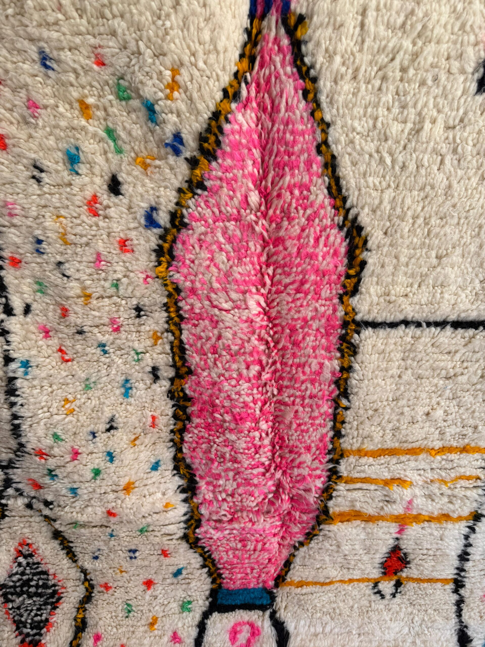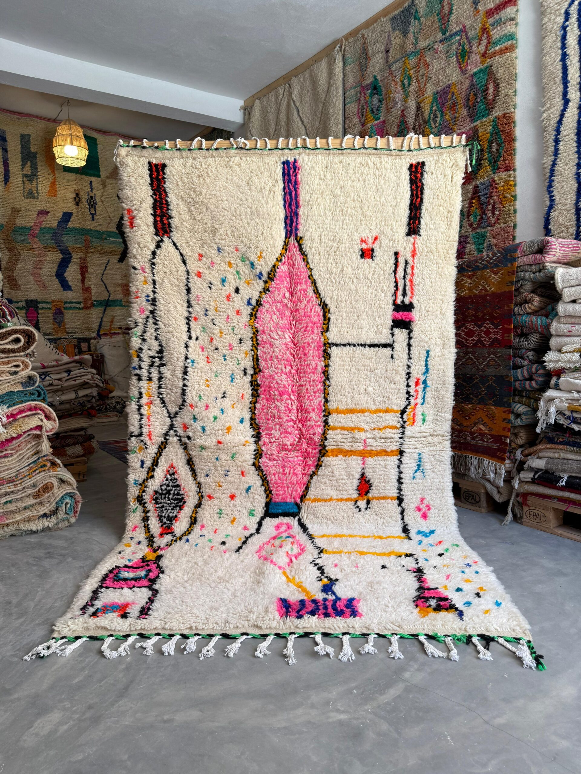 The Mountain Melody captures the moment when creativity bursts into life — a radiant handwoven Azilal rug that celebrates growth, imagination, and the bold spirit of Moroccan artistry.