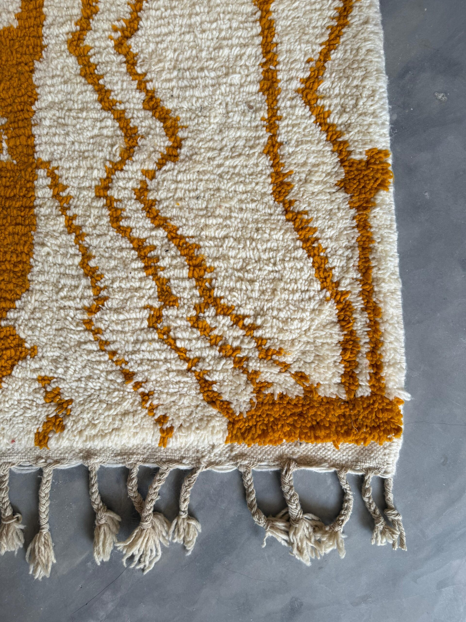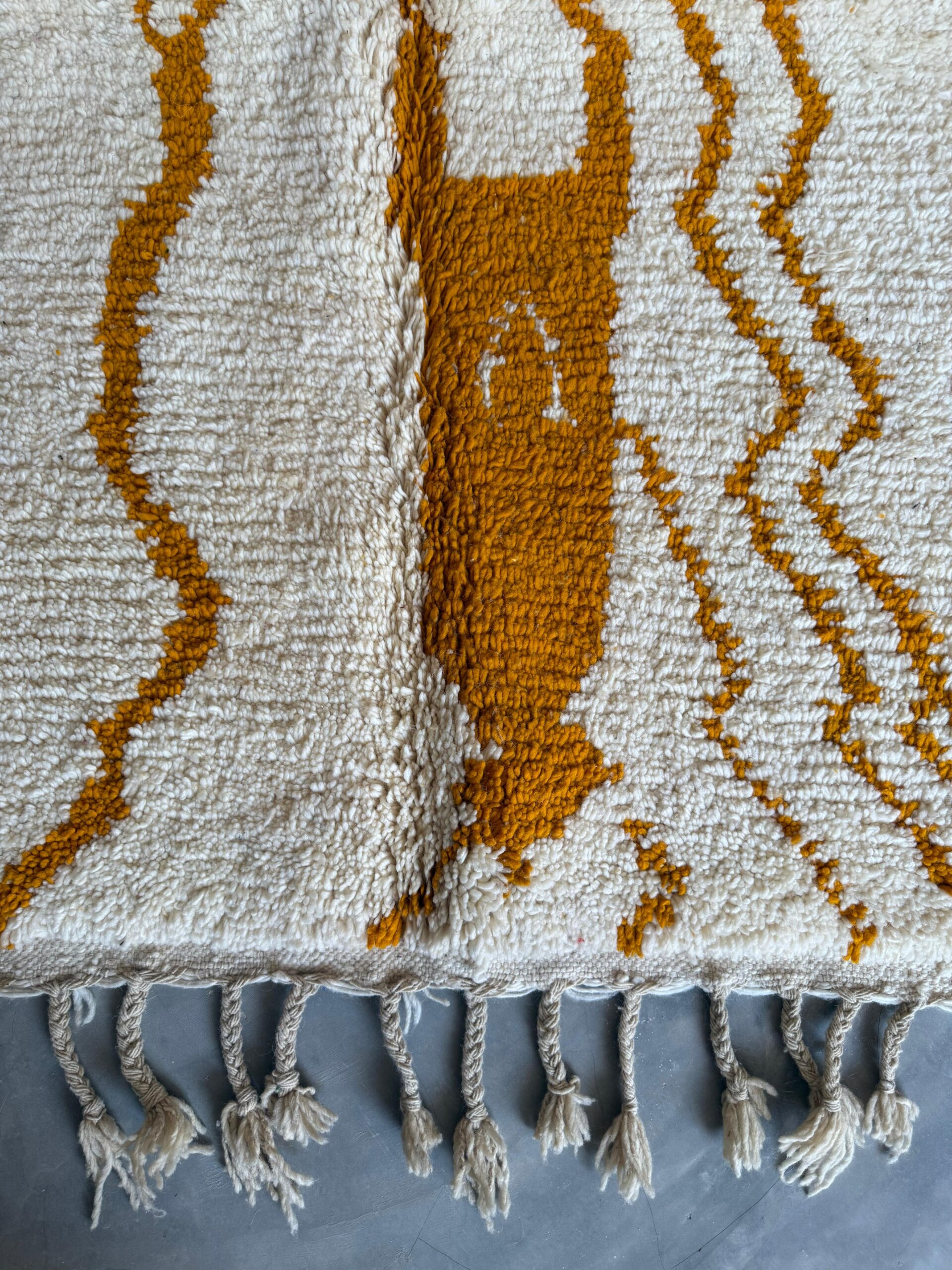 The Amber Flow captures the movement and warmth of Morocco’s golden landscapes — a stunning Azilal rug that blends natural softness with bold, expressive design.