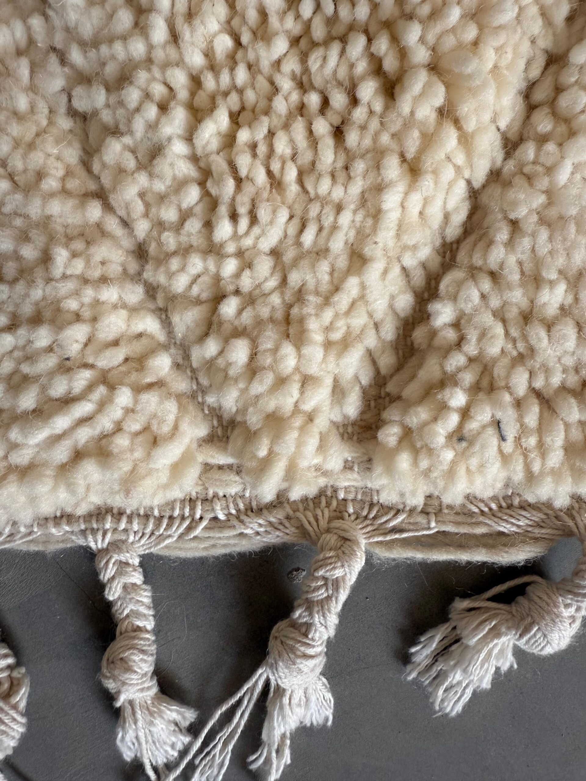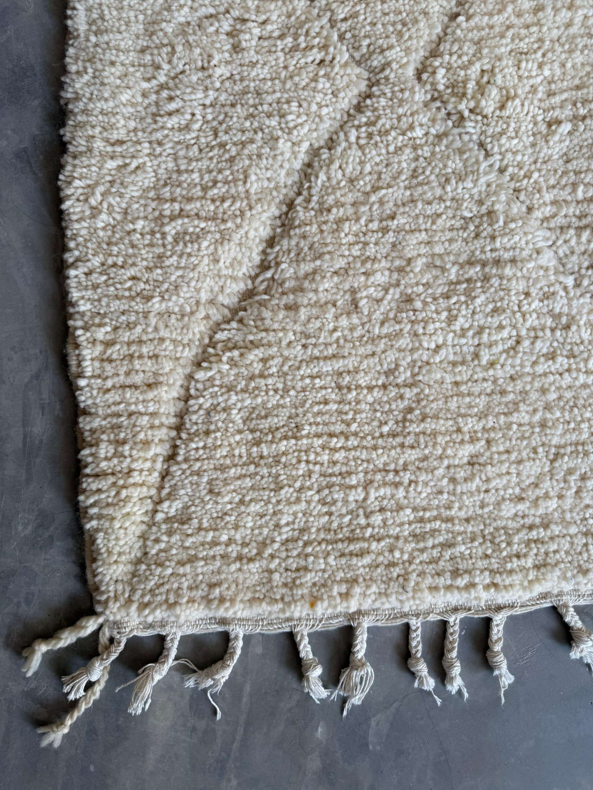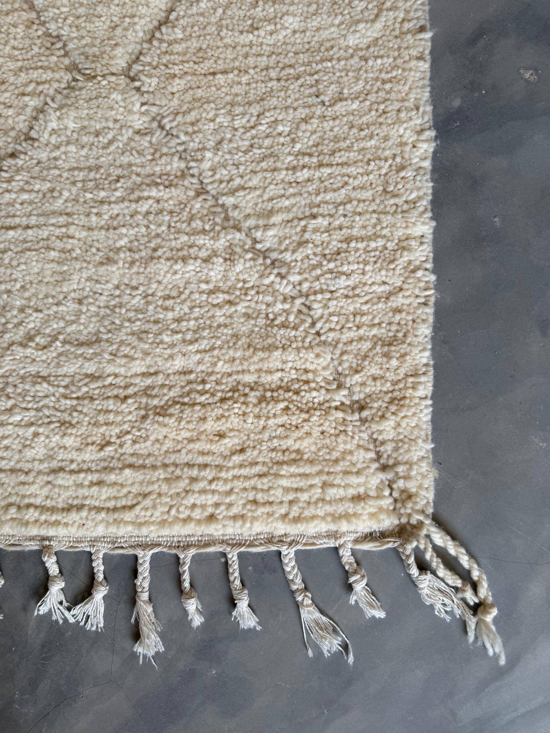 Soft, serene, and effortlessly sophisticated—this handmade Beni Ourain rug is a celebration of texture and tradition. Expertly woven by Berber women from natural wool, its creamy beige tones are elevated by a gentle diamond lattice pattern, offering a refined yet grounded look that complements any interior.